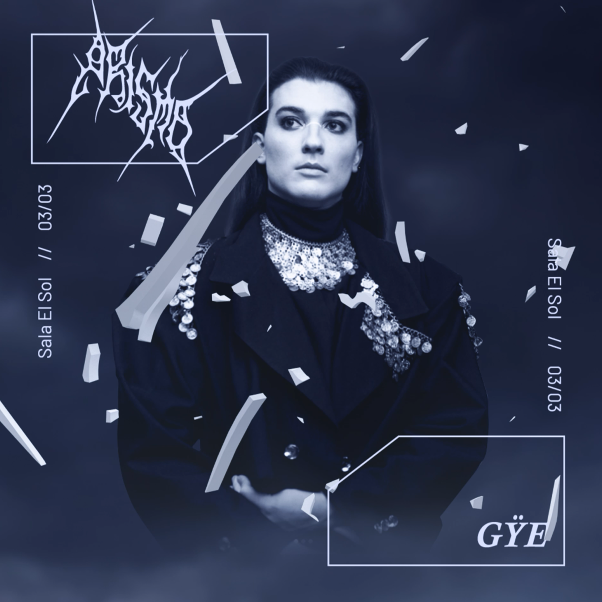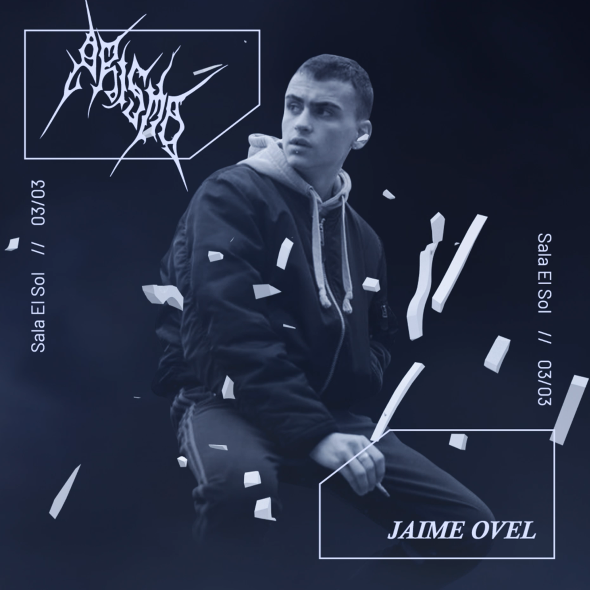 El planteamiento creativo, me llevó a considerar a los diferentes fragmentos que componen el logotipo como el Key visual de la estética planteada de cara a este evento, por ello iban a estar presentes en todas las piezas. La pieza principal presenta un carácter explicativo en el sentido en el que muestra a estos fragmentos recomponiéndose, para luego justificar su uso en las dos piezas restantes destinadas a la promoción de los artistas.