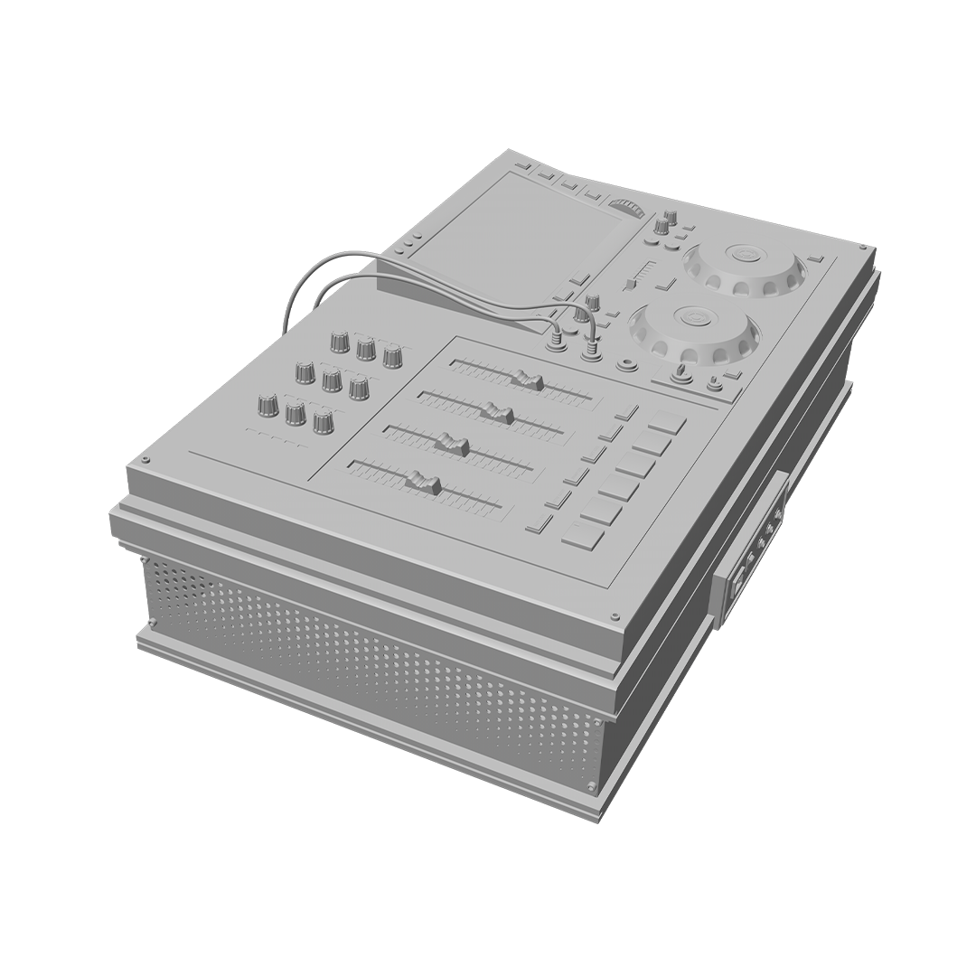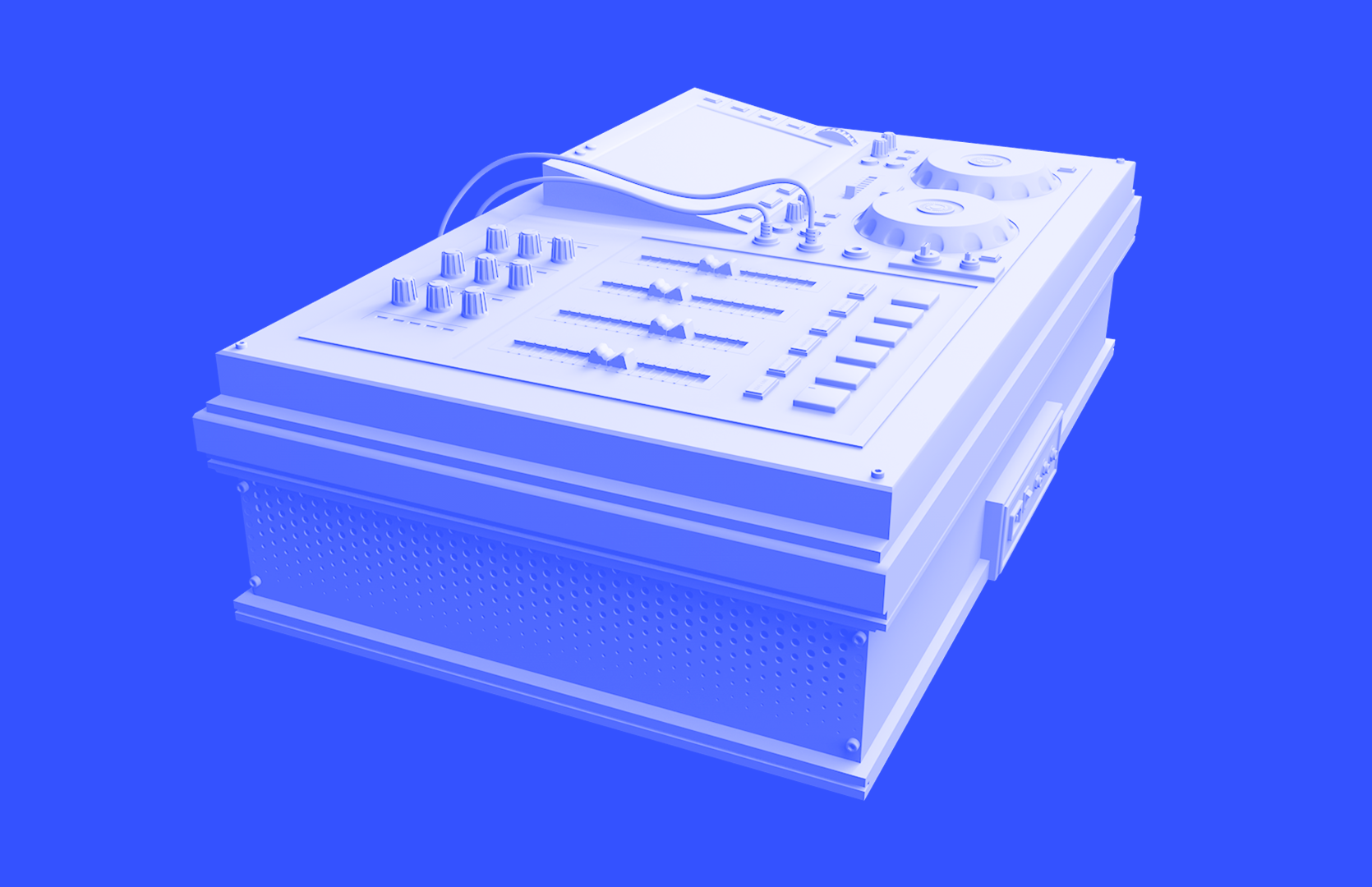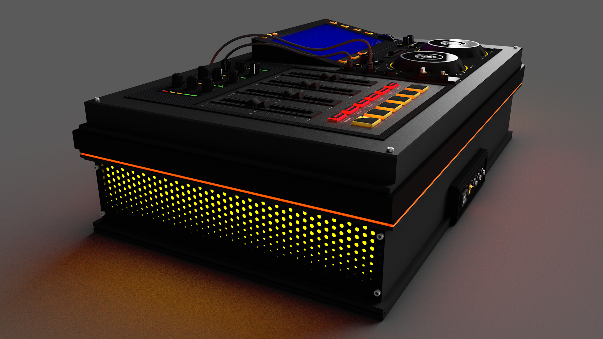 En vistas a que no terminaba de dar con una idea que me encajase de cara a este proyecto, recurrí a las mesas de mezcla de Pionner. Utilizándolas como referencia, ideé mi propio dispositivo con un soporte luminoso en su parte inferior, haciendo alusión a esa idea primaria que tenía en mente.