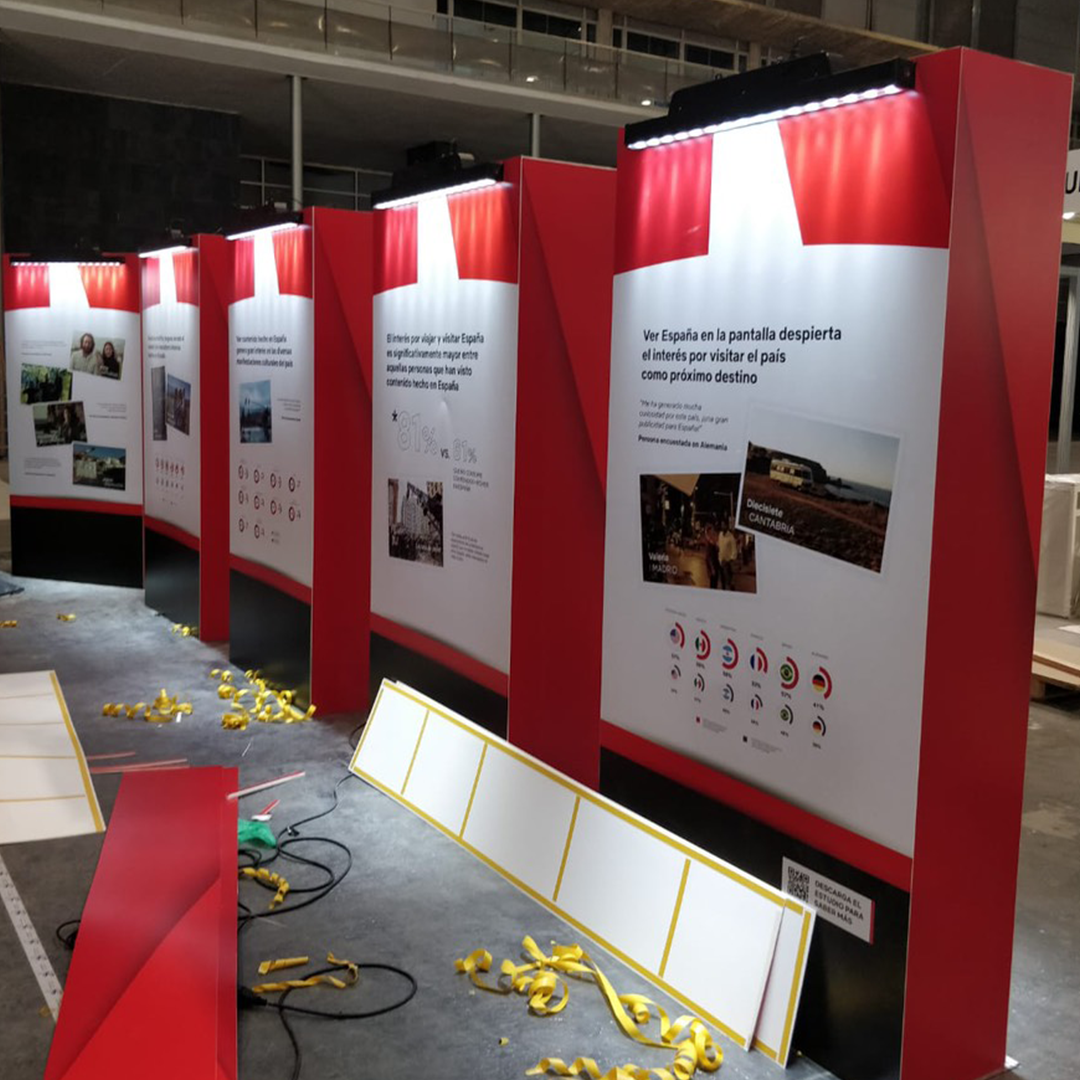 Tras la elaboración y aprobación de los diseños, procedimos a la elaboración de los artes finales para su impresión y posterior montaje en la localización asignada dentro del recinto.