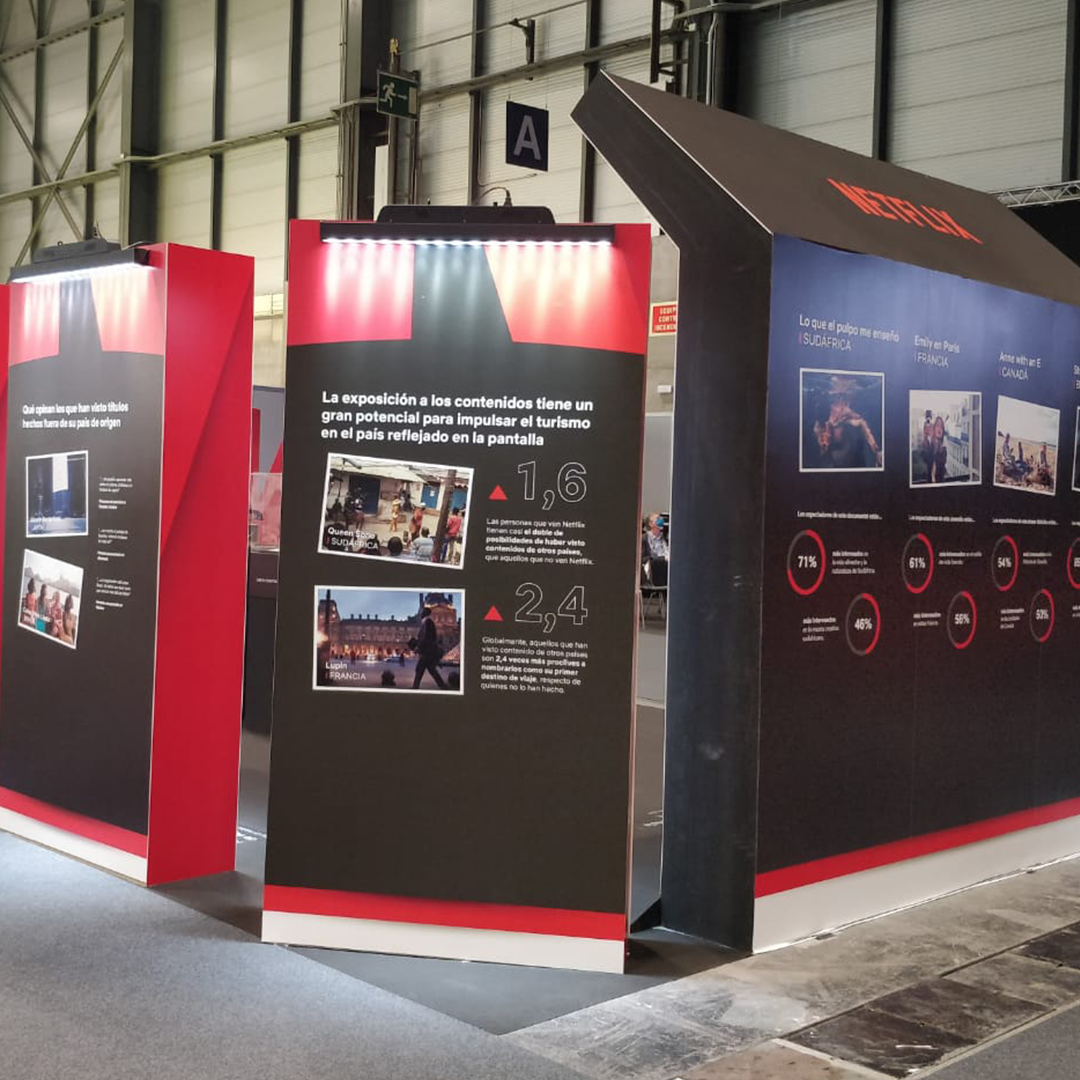 Durante mi etapa profesional en la agencia de comunicación LLYC, participé de forma activa en la elaboración del stand de Netflix para la feria de turismo FITUR 2021.
